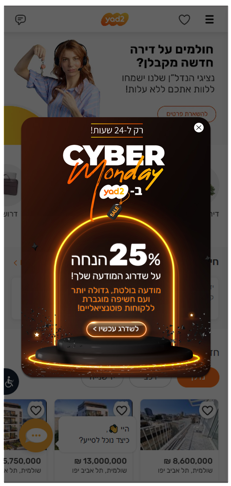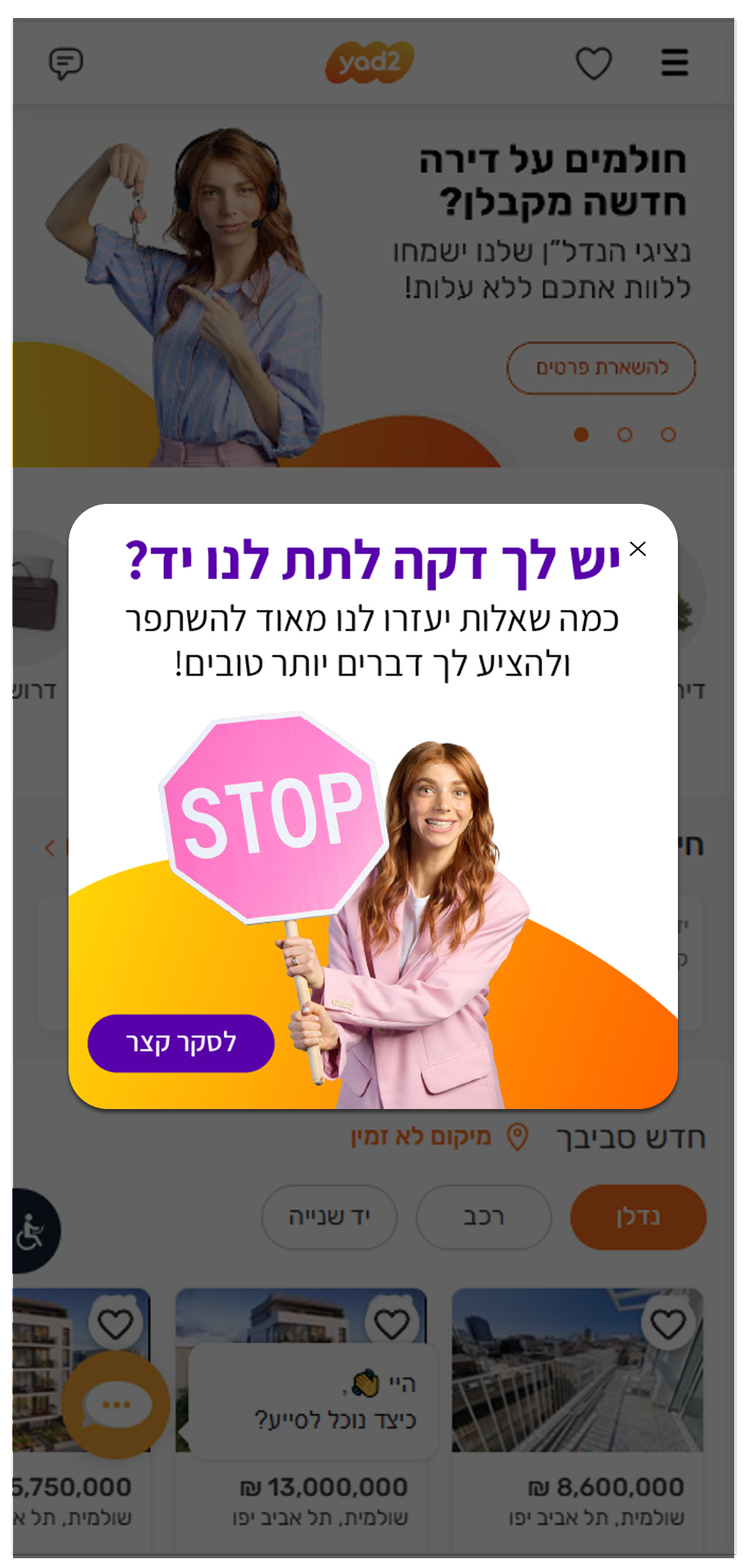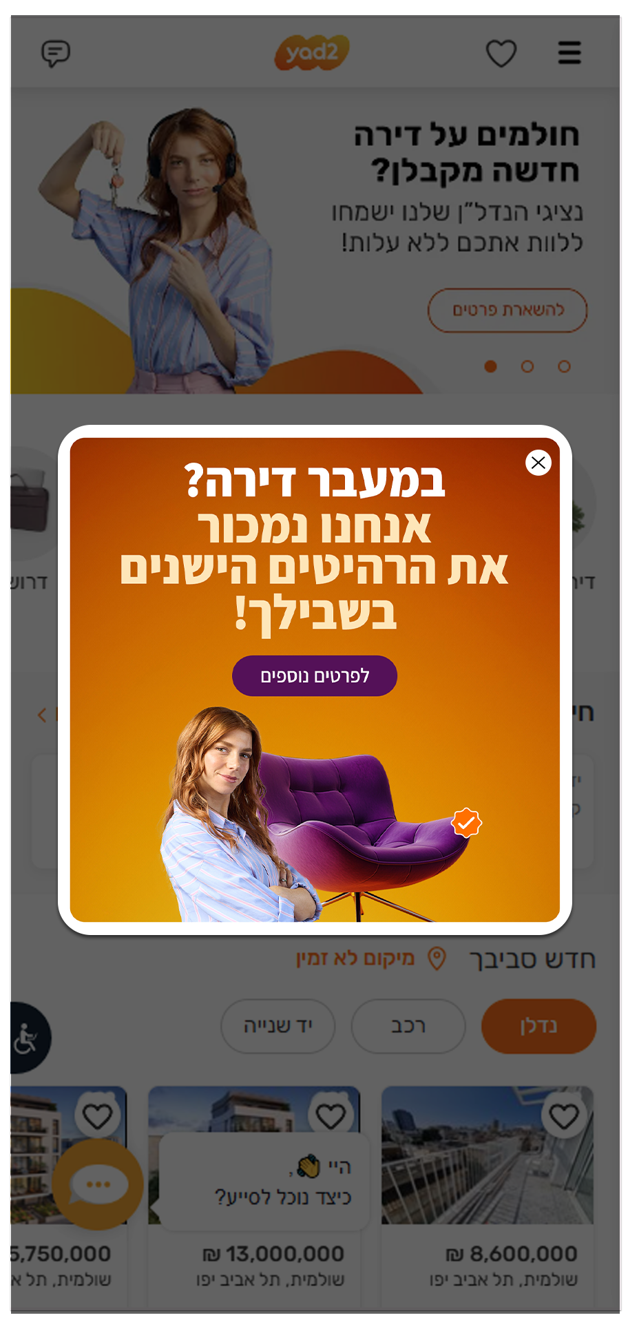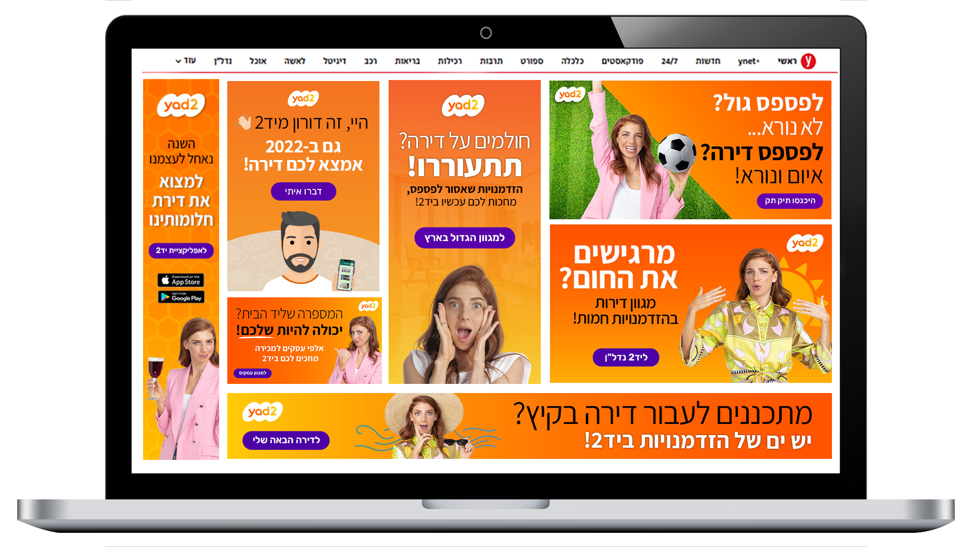 ■ עיצוב באנרים בגדלים שונים ■ עיצוב דפי נחיתה ■ עיצוב סטורילי לאפליקציית יד2 ■ עיצוב פופ-אפים לאתר יד2 ■ עיצוב דיוורים ומסעות לקוח